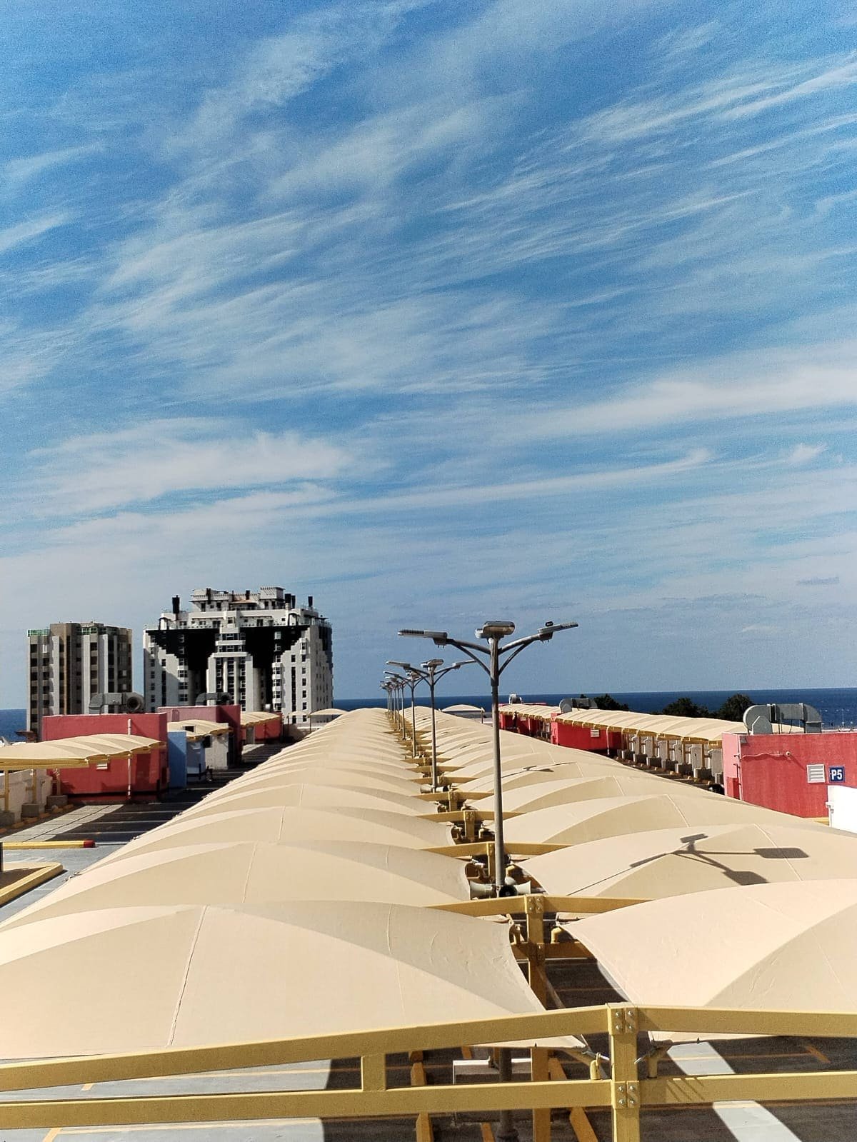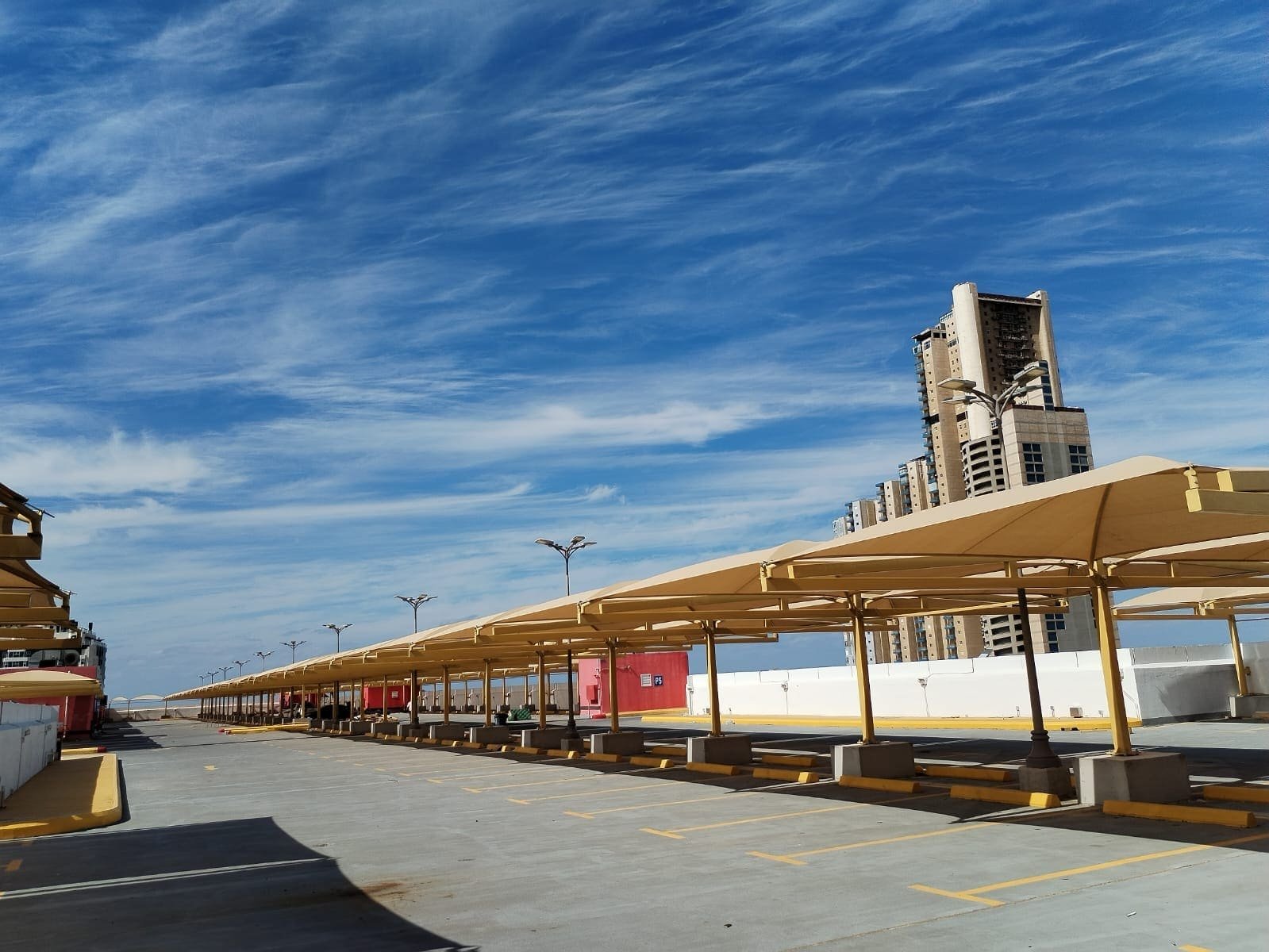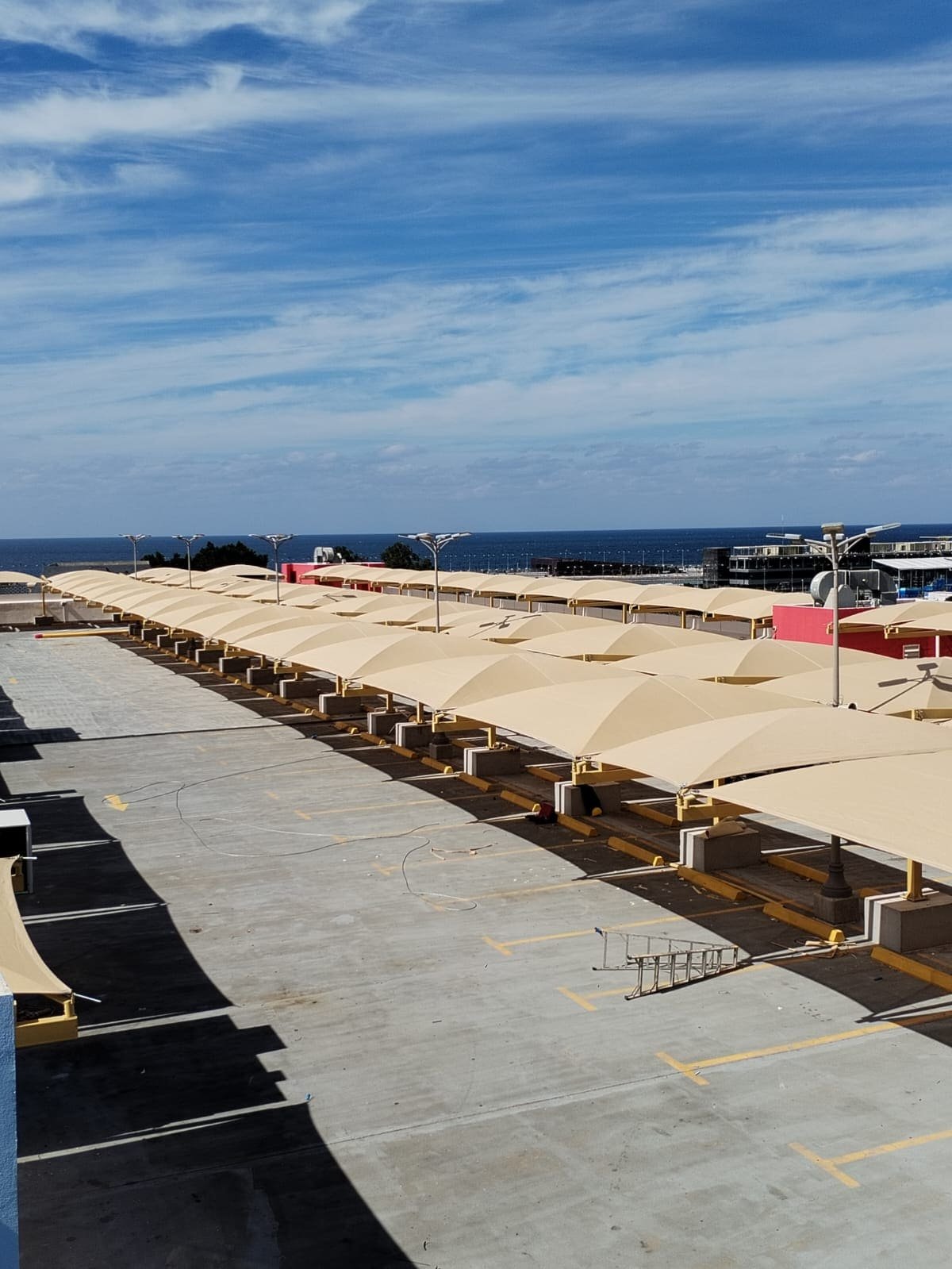 مظلات السيارات: يتم تركيبها في المواقف الخاصة والعامة لحماية السيارات من حرارة الشمس المباشرة وأضرار الأشعة فوق البنفسجية.