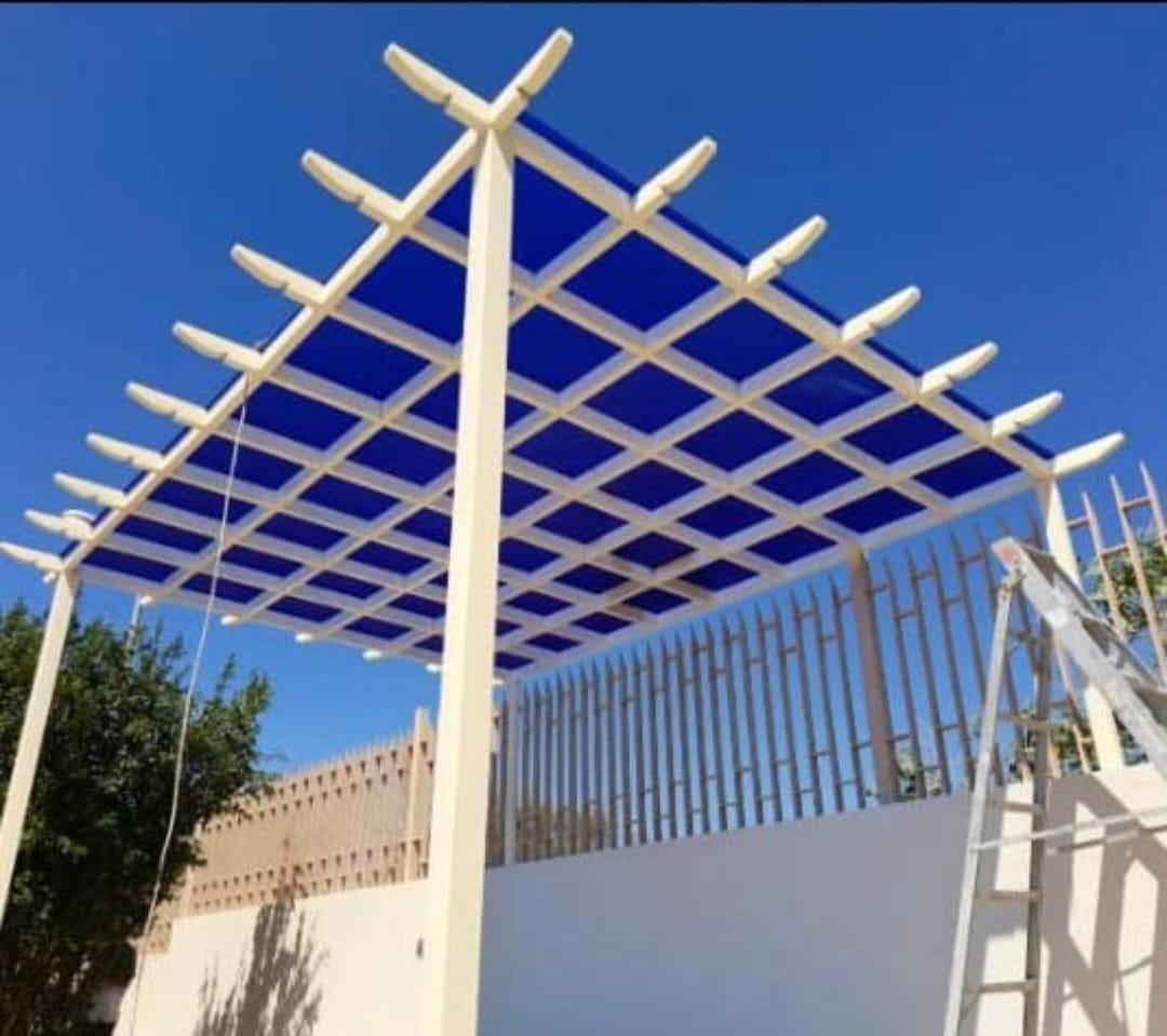 يُحدد نوع البرجولة (خشب أو حديد) ولون اللكسان المناسب.